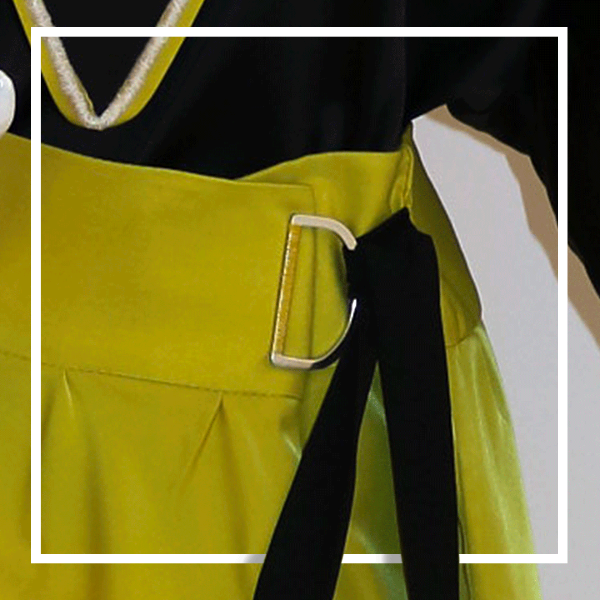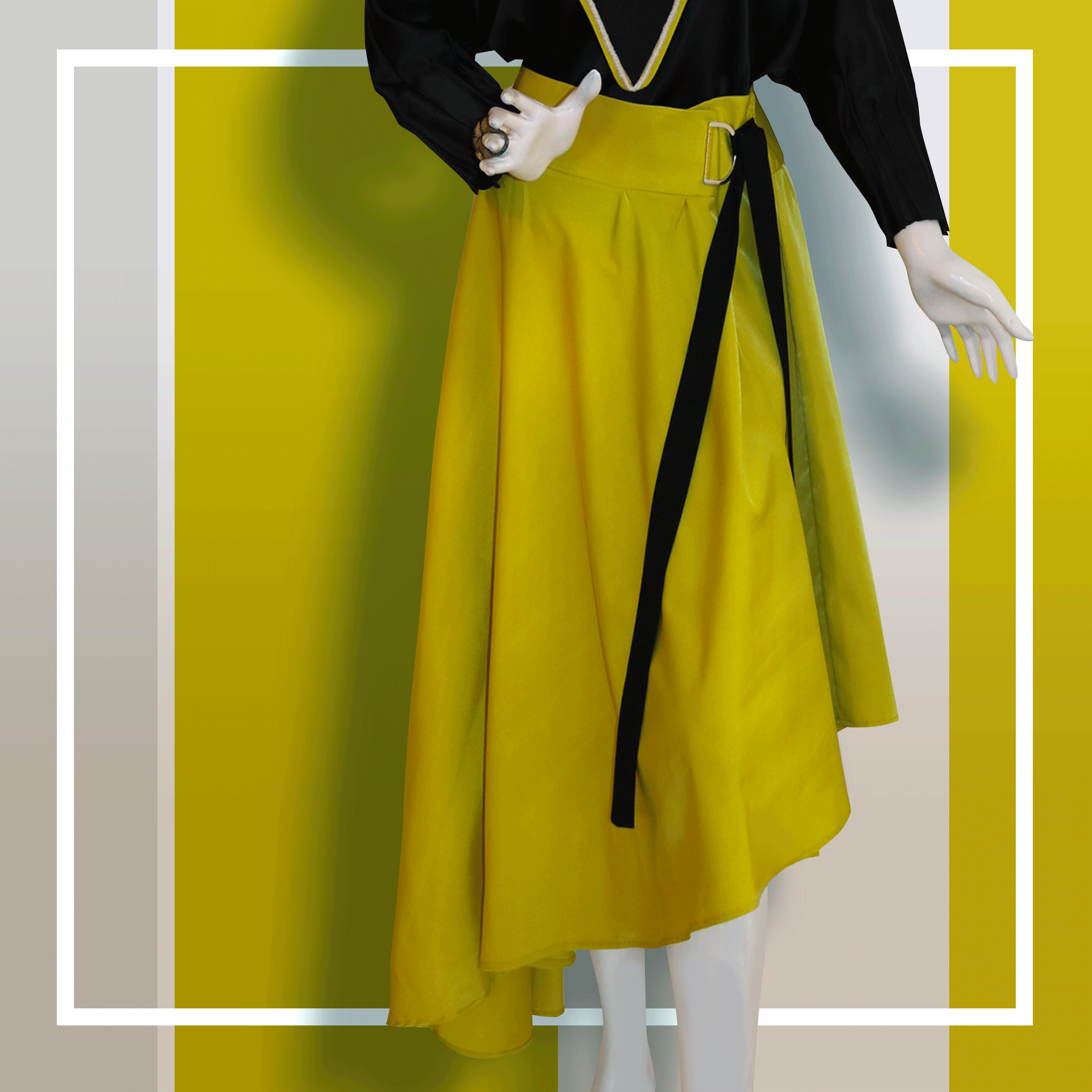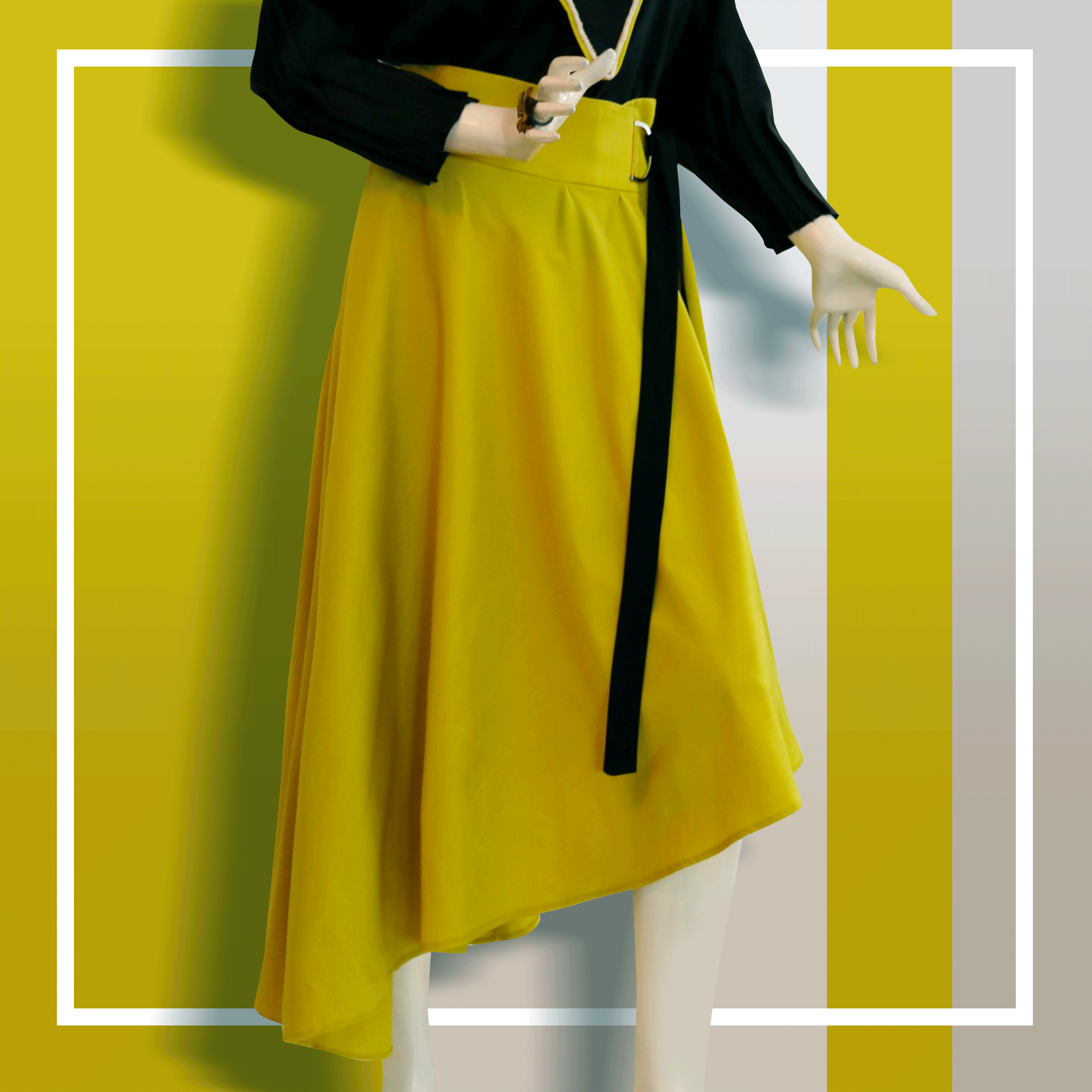 This is a long cloche skirt with asymmetric edges and adjustable waist. You'll love the color:)