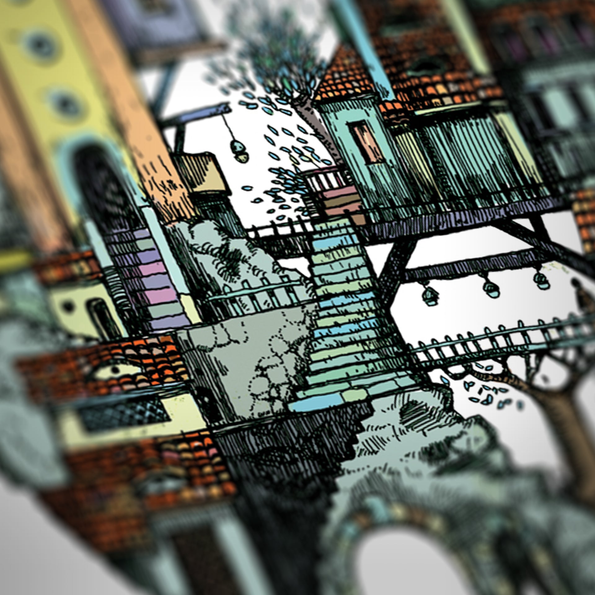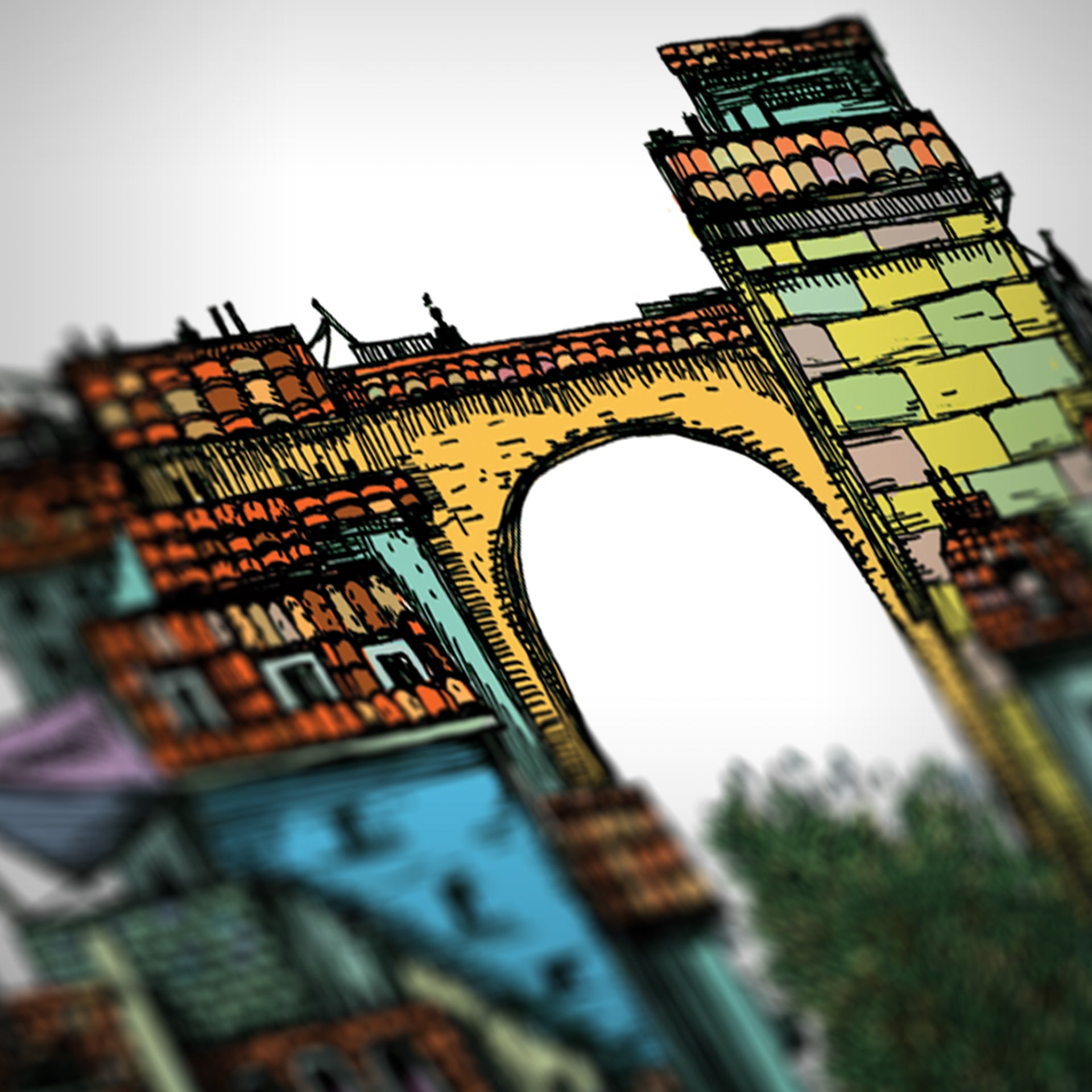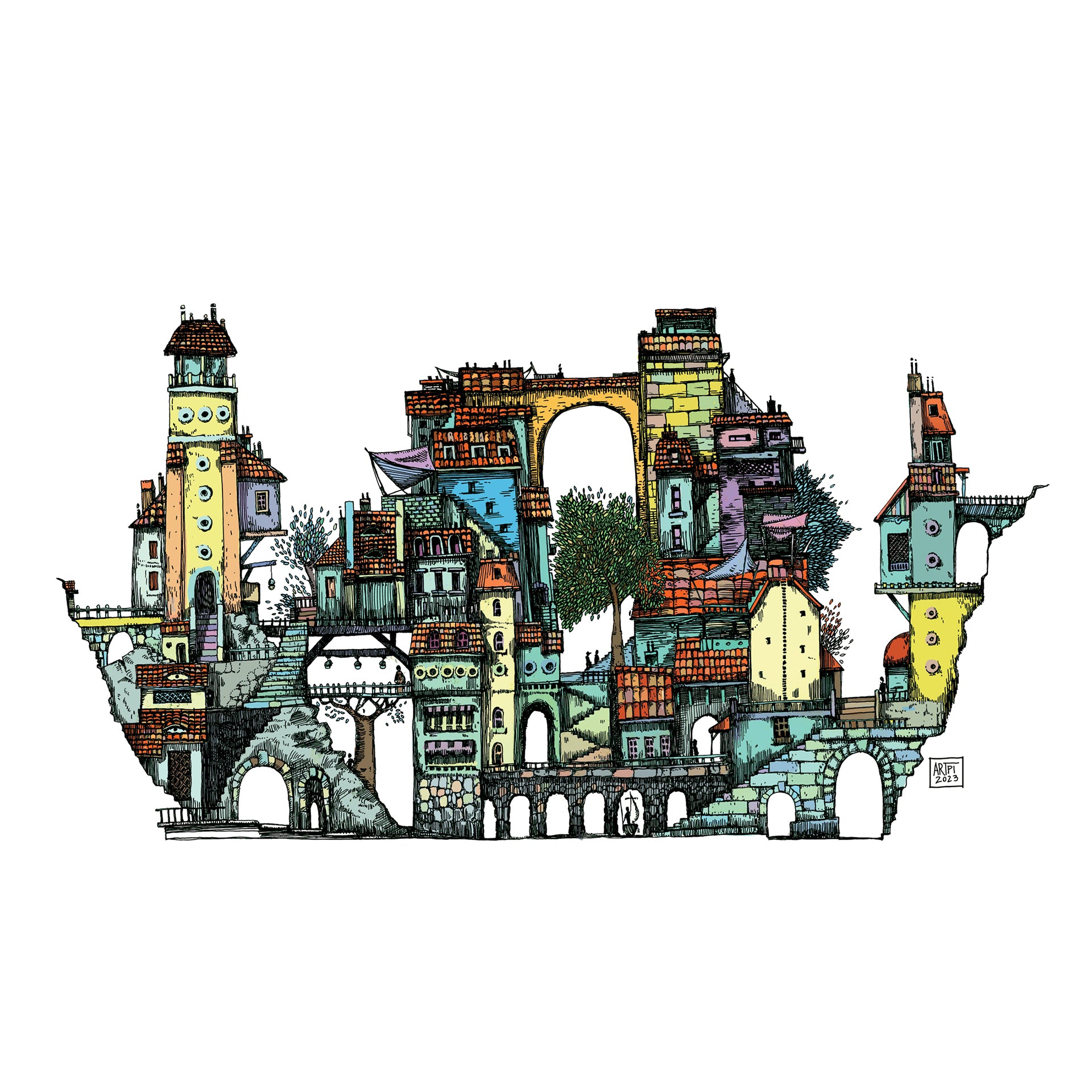 Acest orășel fantastic pare sa pluteasca în aer, dar de fapt este un uriaș pod suspendat. Casele suprapuse sunt atârnate cu grație una de cealalta. Luminițe sclipitoare se întind pe aleile pavate cu pietre prețioase, creând un labirint prin care locuitorii orasului se mai ratacesc uneori.