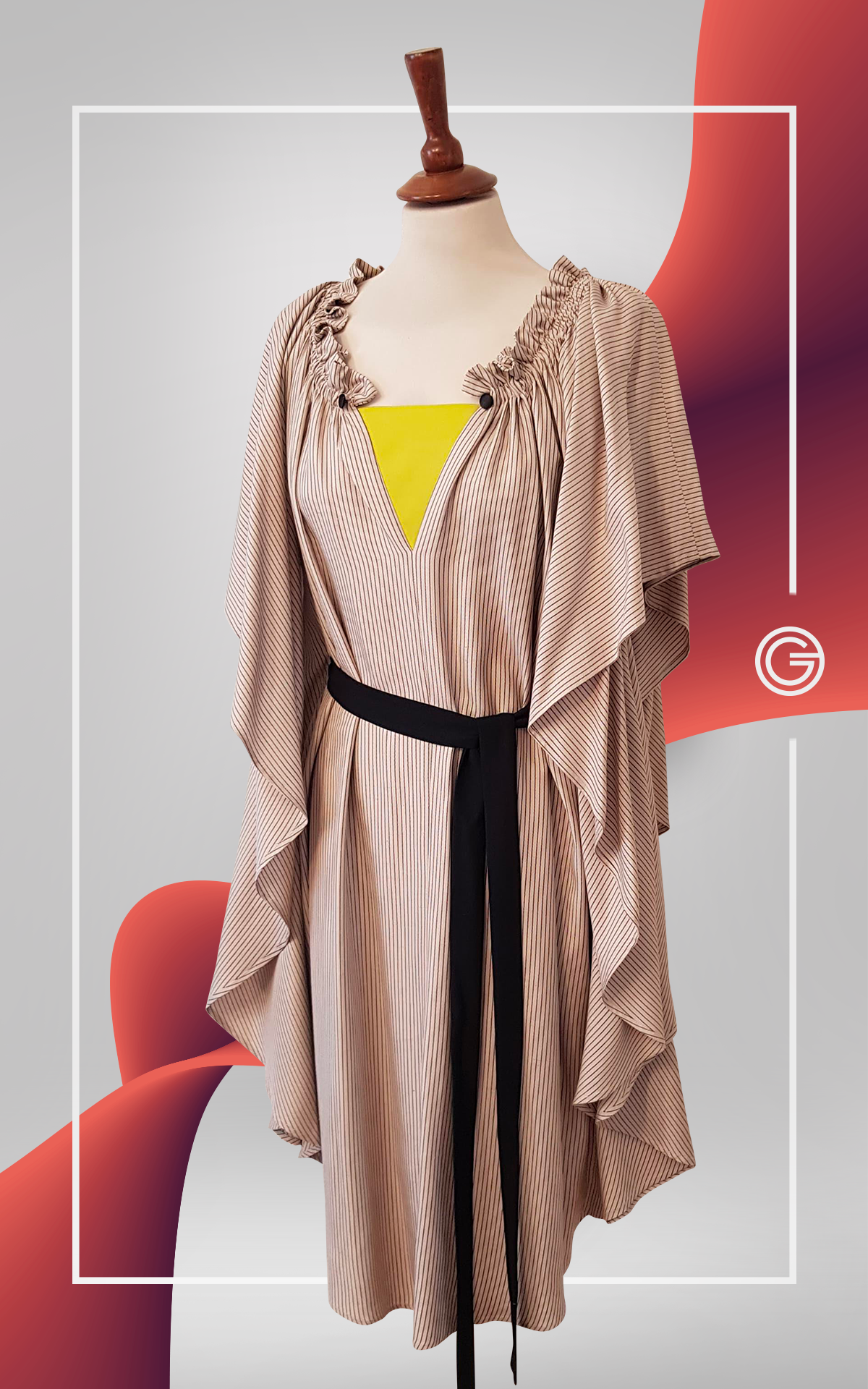 Butterfly Dress, a must have for summer time; linen feminine dress with large delicate sleeves and a black belt to point out the waist. Just as a butterfly.