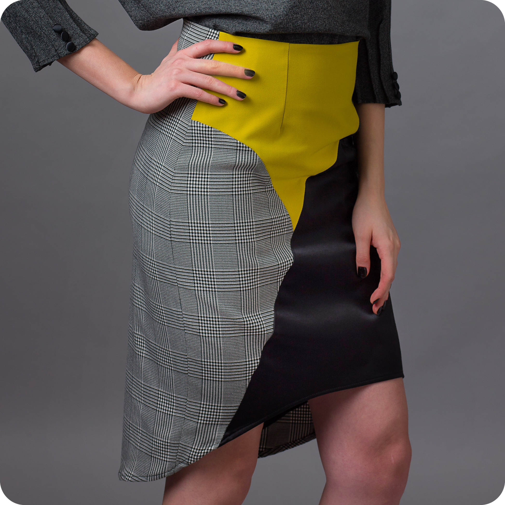 Makes you feel both sexy and confortable due to the softness of the fabrics. The geometric shapes and asymmetric lines compliment your silhouette. Onna, The Skirt brings some playful elegance to your outfit.