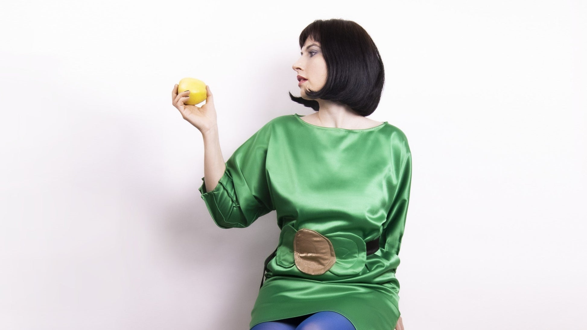 Apple Green sau Verde Iarba este a doua culoare din seria Joyful. Acelasi model din tafta, buzunare ascunse, maneci trei sferturi ajustate cu pliuri si decorate cu nasturei imbracati in tafta. Si piesa de rezistenta, a rochiei adica, centura artizanala cu flori stilizate.