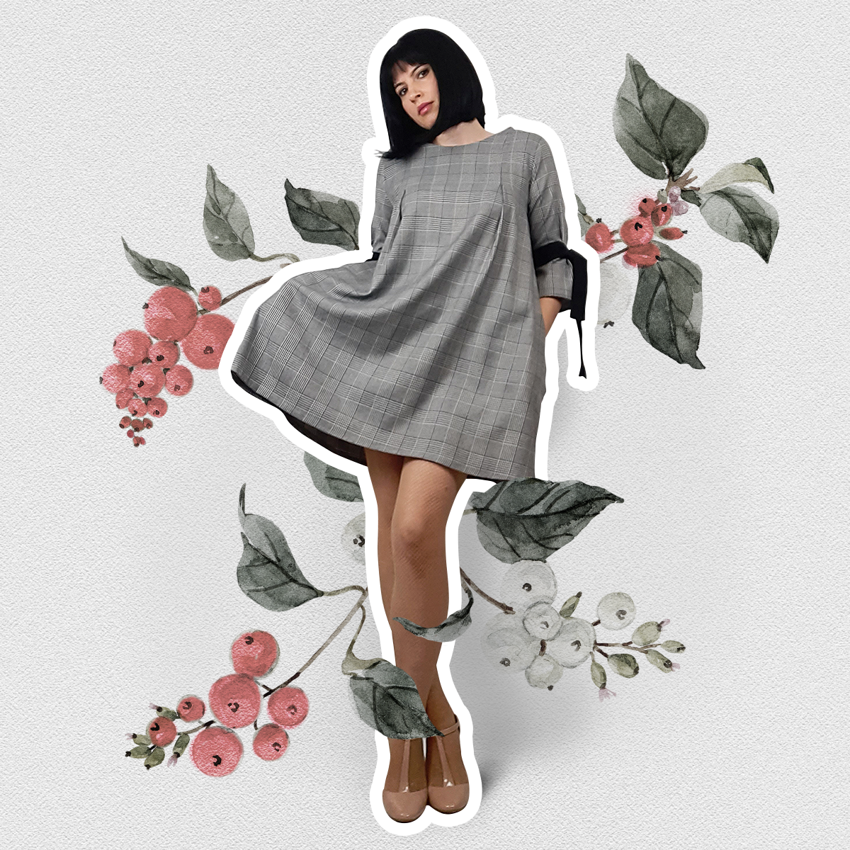 When I came up with this design I thought of a very confortable dress to wear it all day long. I attached black ribbons to tight the sleeves and pockets, a must for day to day wear. The back has a black collar to match with the ribbons.